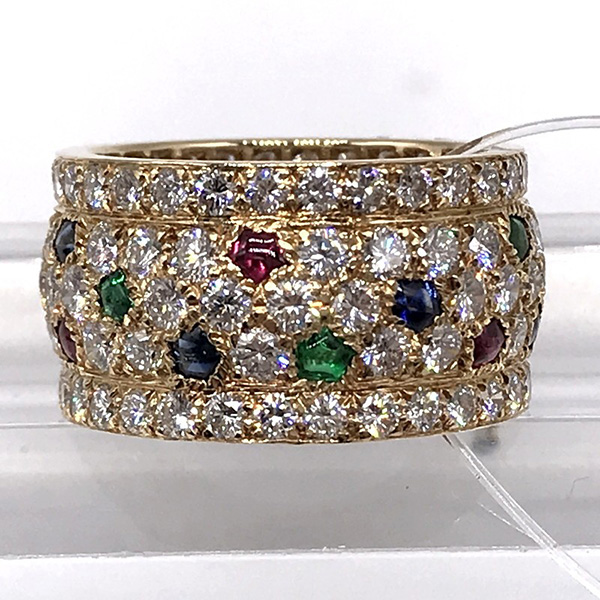 K18YG 10.7g #58 ダイヤ エメラルド ルビー サファイア 箱 修理証明書